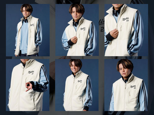 (M/Lサイズ)ロゴ刺繍フリースベスト(フリエ筆記体ロゴ/ナチュラル)
