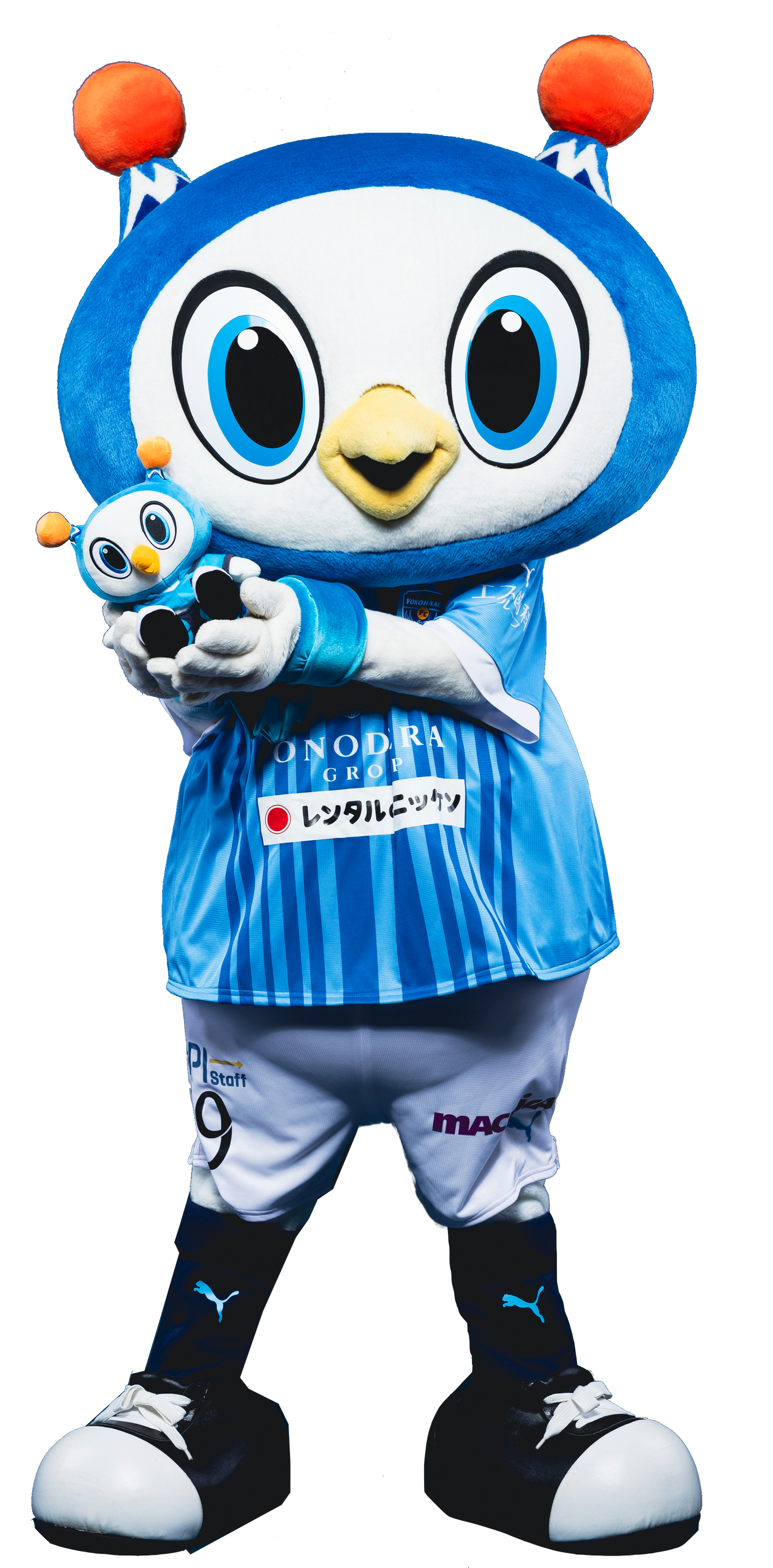 愛称「フリ丸」。ホームタウン横浜の先進的なイメージと、横浜FCの未来への可能性を広大な「宇宙」と連動させ、宇宙人をモチーフ。クラブの立ち上げにかかわったすべての人々の願いを背負い、熱い思いを守り続ける不死鳥の使者として誕生。