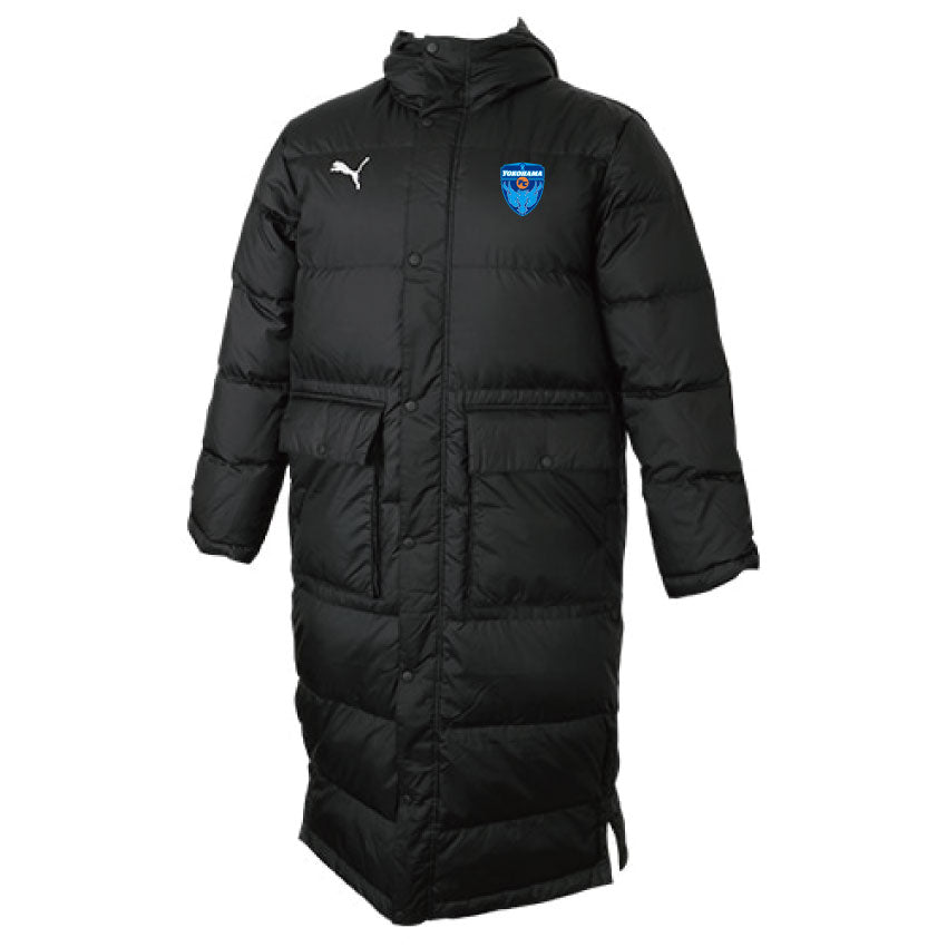 横浜FCエンブレムが付いたロングダウンコート。