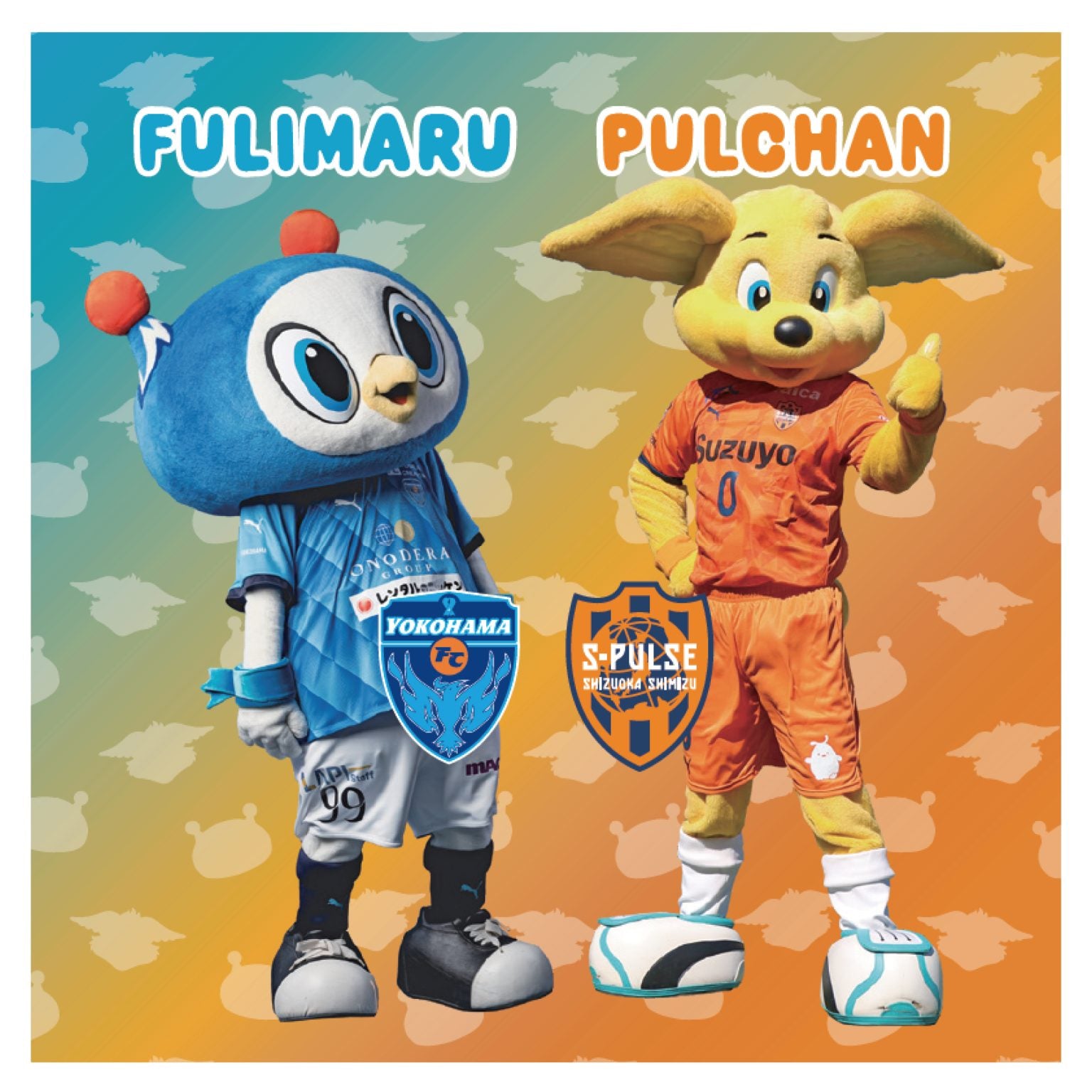 フリ丸とパルちゃんのコラボミニタオル!フリ丸はパルちゃん直伝のポーズをしています!背景にはフリ丸とパルちゃんのシルエットを散りばめ、可愛らしいミニタオルになっています。お出掛けの際に持ち運びやすいサイズ感です。