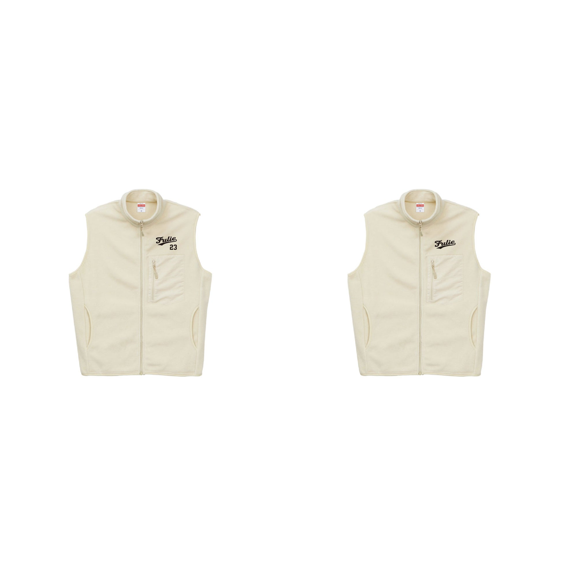 (XLサイズ)ロゴ刺繍フリースベスト(フリエ筆記体ロゴ/ナチュラル)