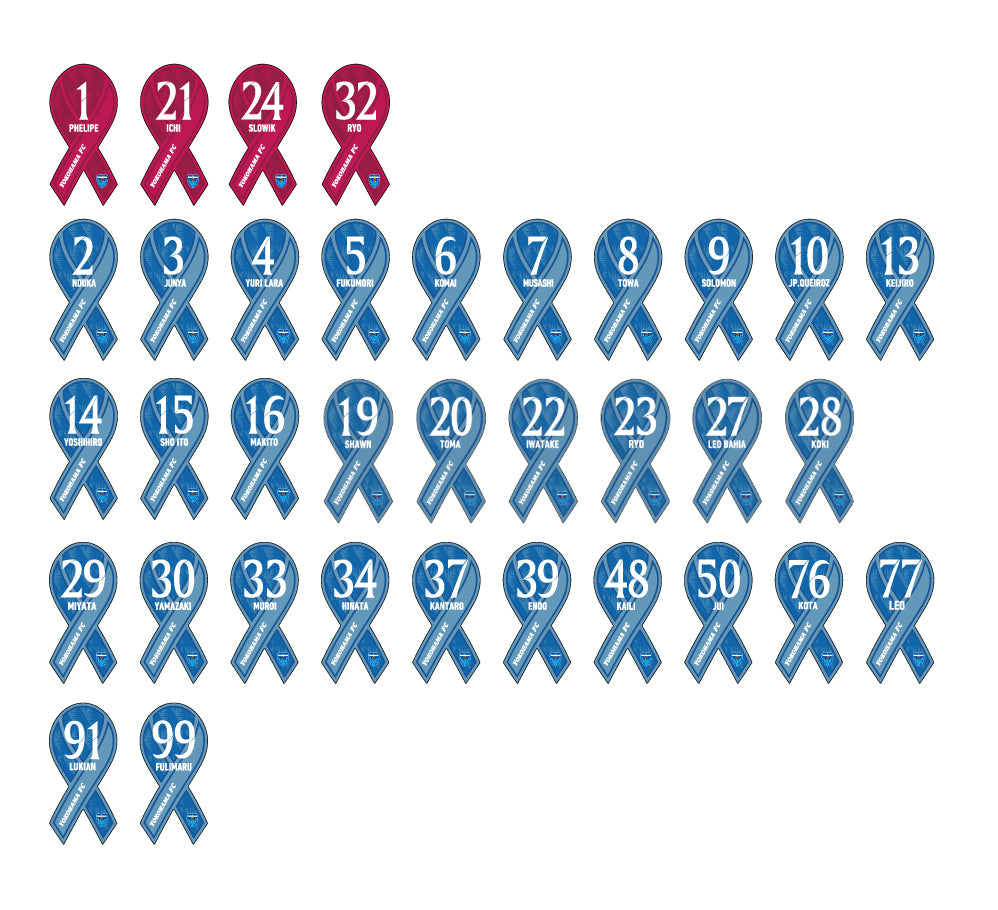 ユニフォームデザインのプチリボンマグネット!5センチぐらいの大きさなので、冷蔵庫やご自身のロッカーに貼り付けて、日常を横浜FCで埋め尽くしてください!