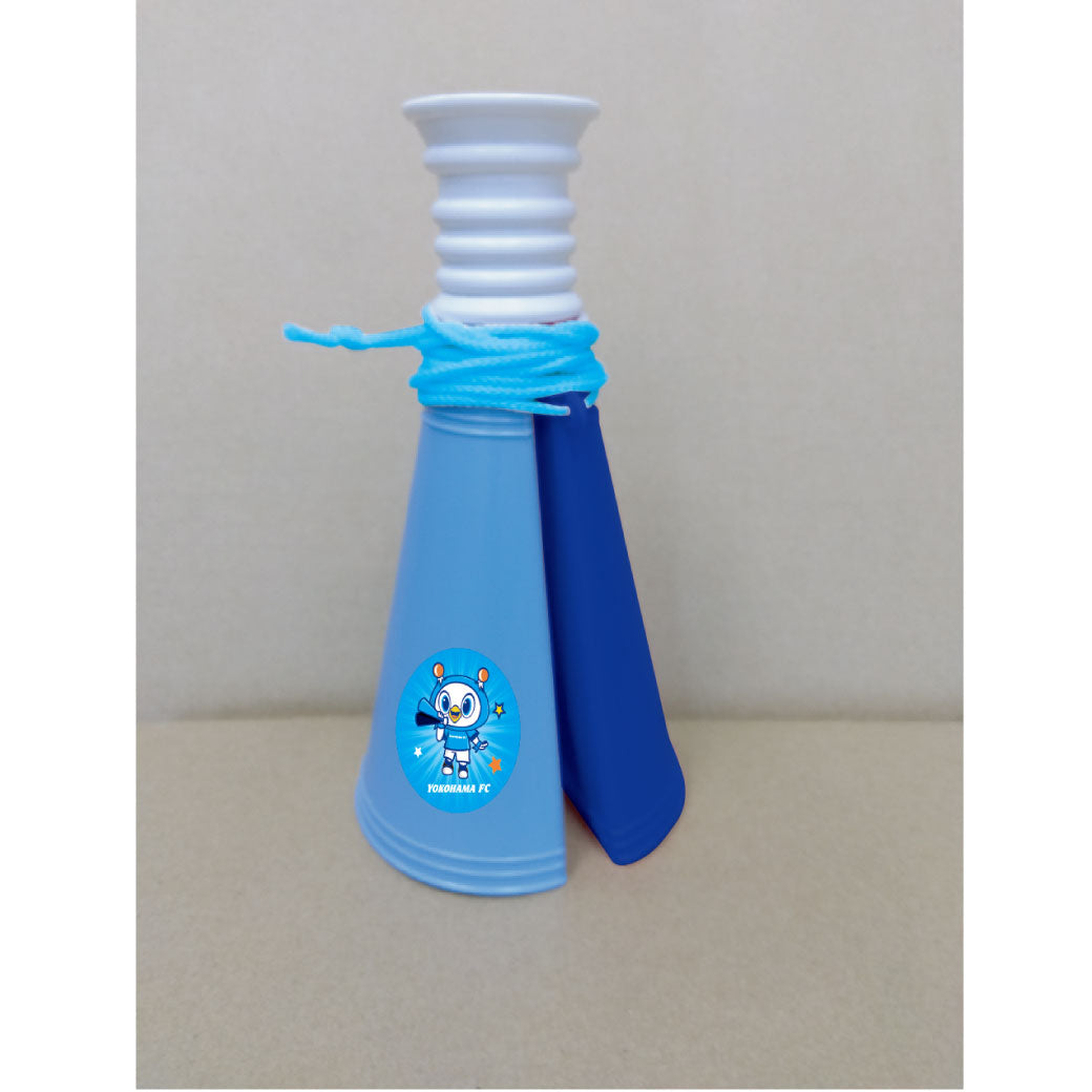 横浜FCカラーの2パーツメガホンです!メガホンを持って応援するフリ丸がデザインされています!