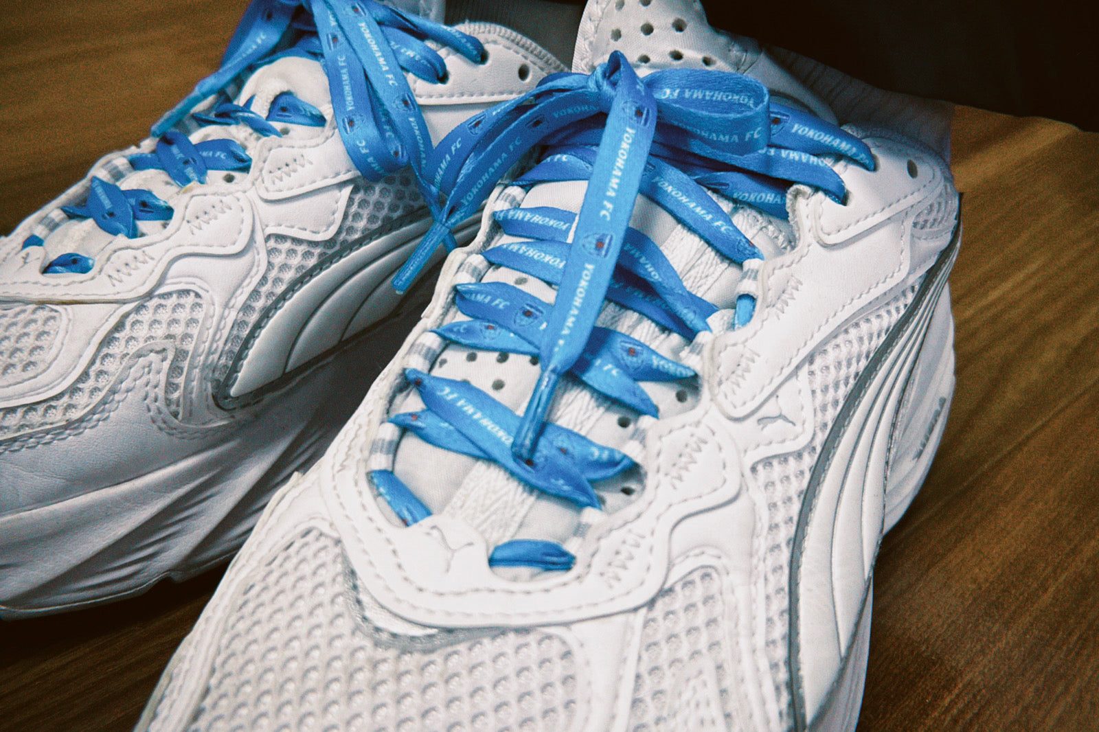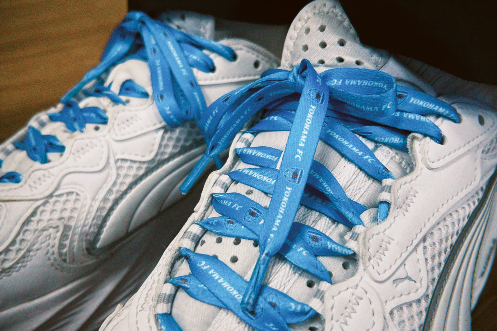 いつも履いているスニーカーを横浜FC仕様に!横浜FCオリジナルの靴紐です。HAMABLUEカラーにエンブレムとロゴがデザインされているので、スタジアム観戦にもぴったり!