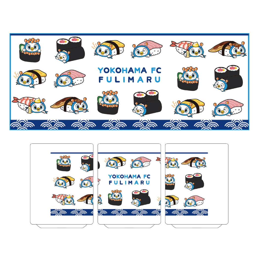 いろんなネタになりきったフリ丸が、ぐるりと一周デザインされた湯呑です!お家や職場でもお寿司屋さん気分を♪